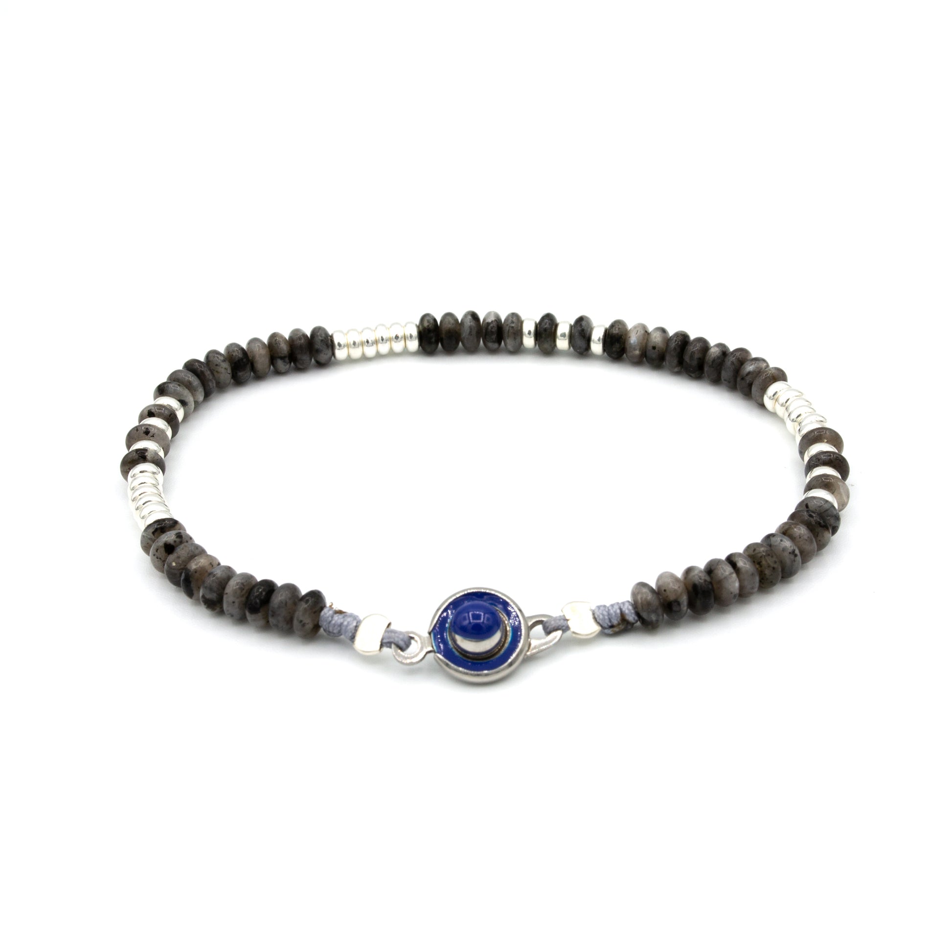 Minimalist yet bold, the Caillou Single Bracelet features natural gray jasper beads paired with sterling silver. Its neutral tones and sleek design make it a versatile piece for any occasion.
