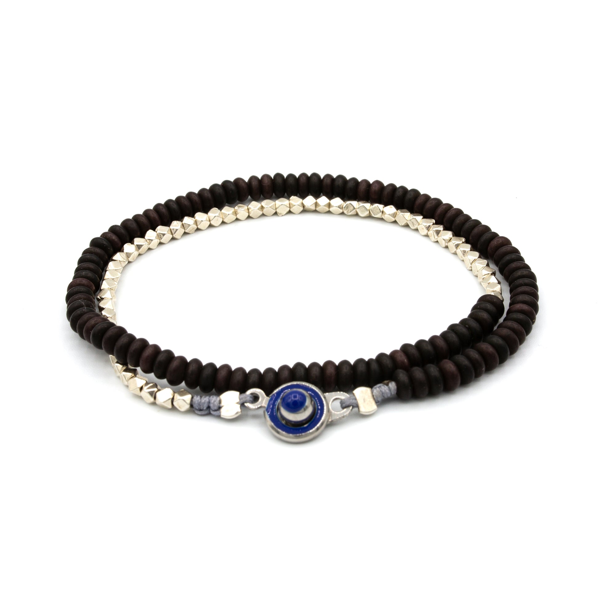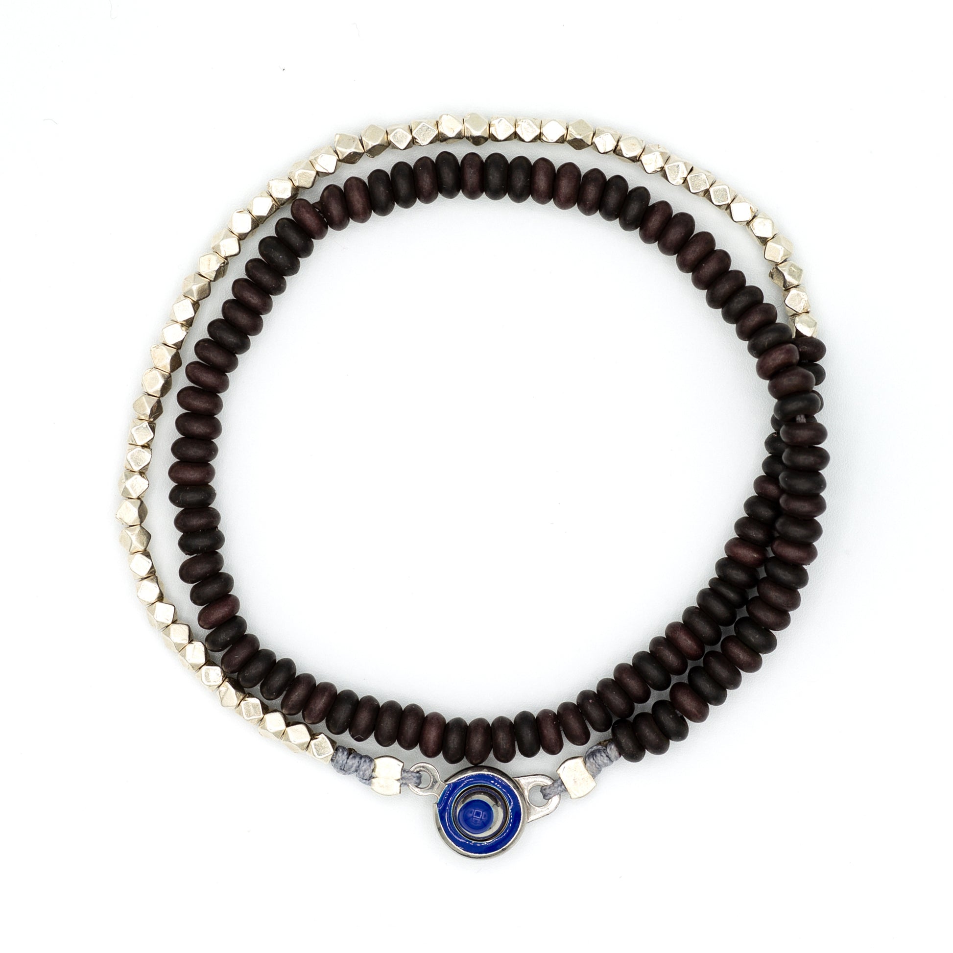 At its center is SOF’s signature evil eye closure, handcrafted in stainless steel with a deep blue enamel inlay—symbolizing protection and strength.