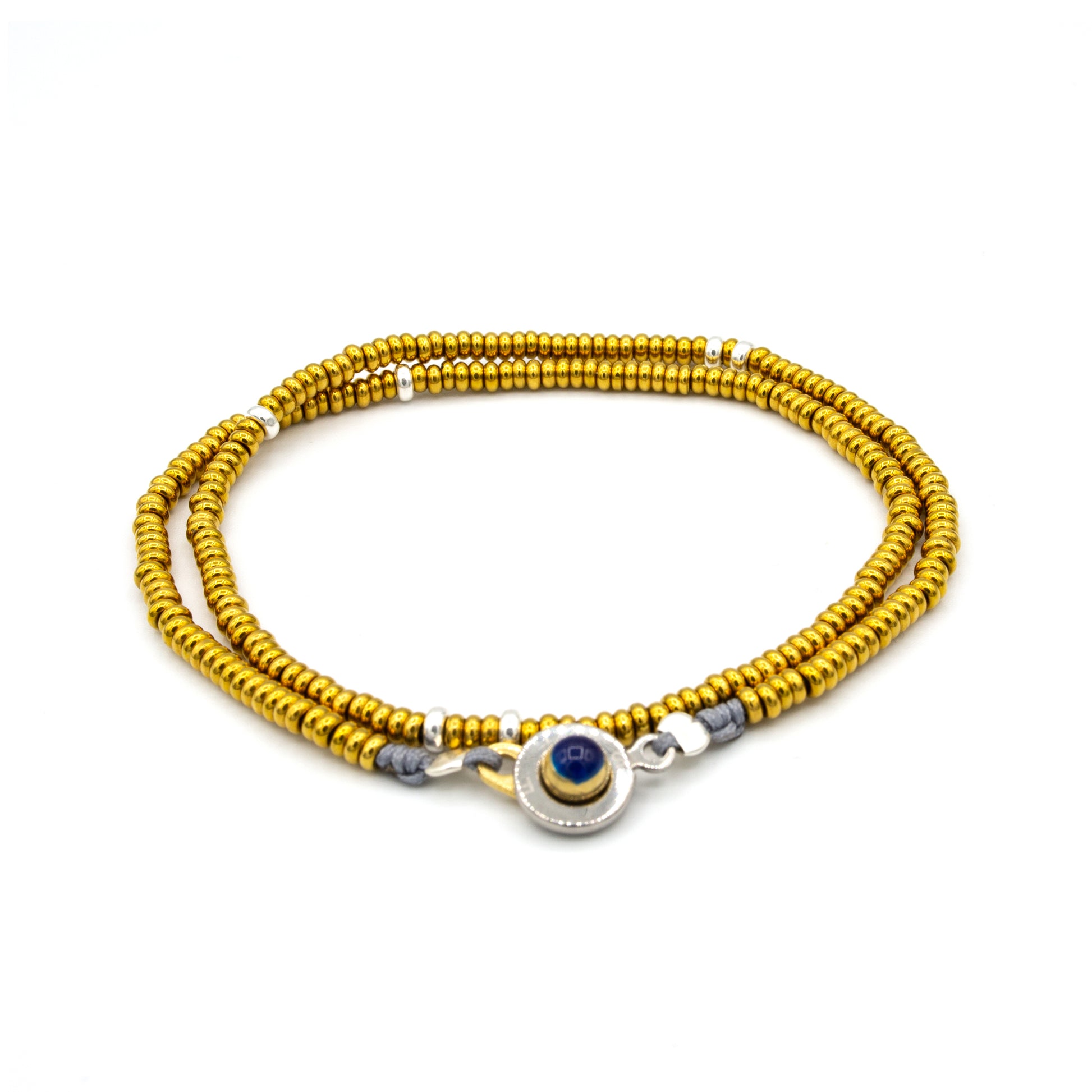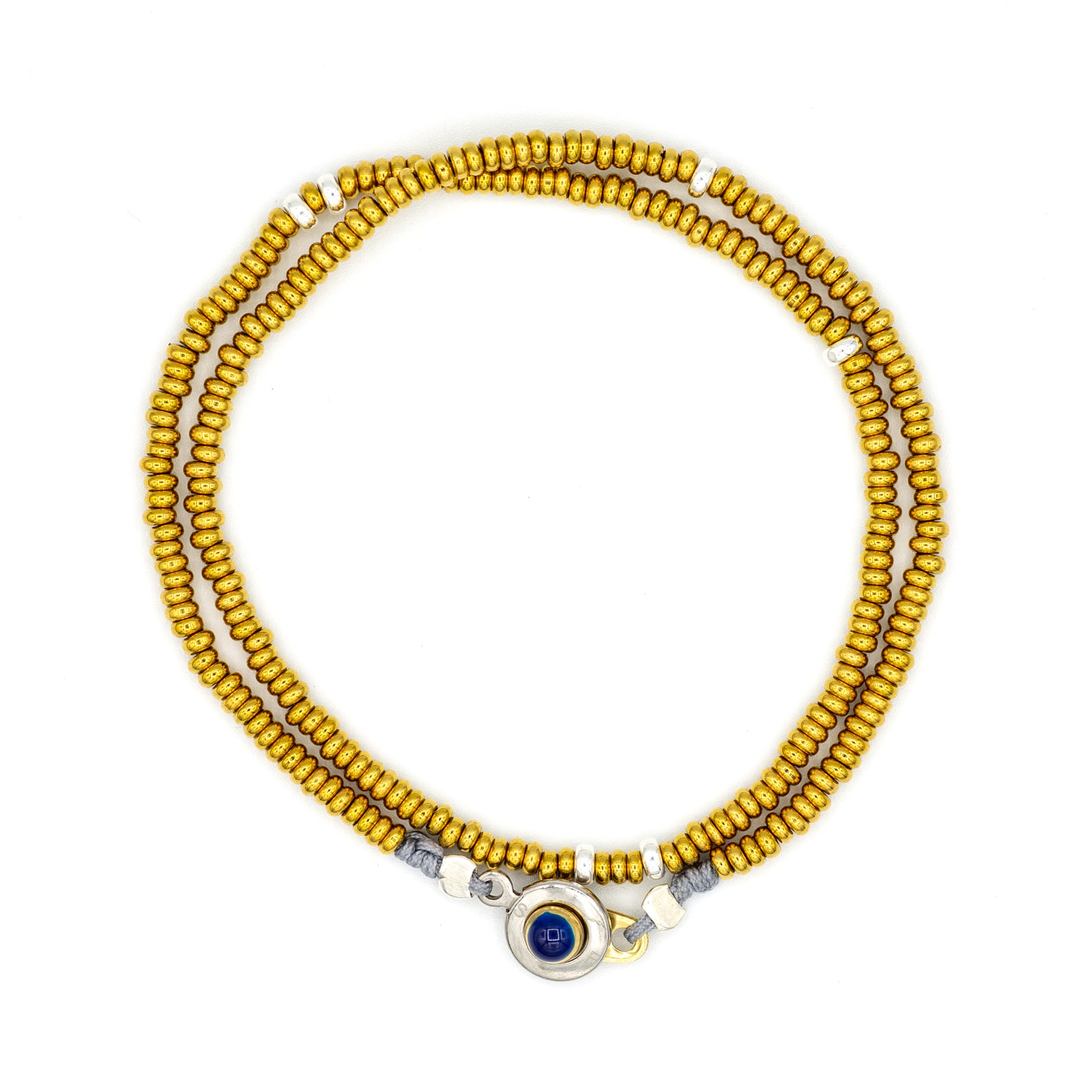 A statement of bold elegance, the Lingot Double-Wrap Bracelet is crafted with gold stainless steel beads and sterling silver. Its radiant metallic finish adds a luxurious touch to any style.