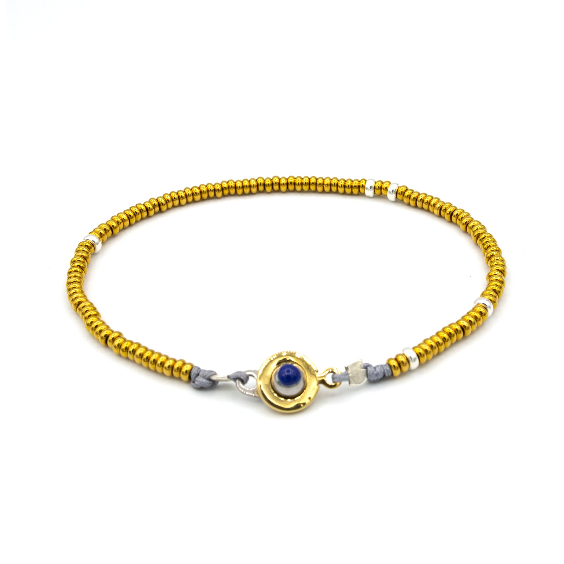 At its center is SOF’s signature evil eye closure, handcrafted in stainless steel with a deep blue enamel inlay—symbolizing protection and strength.